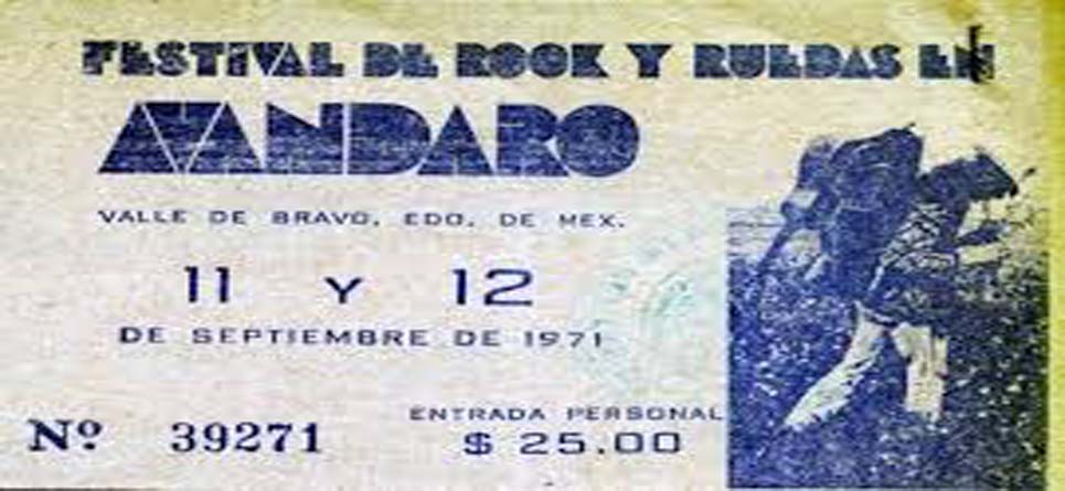 -Festival Rock y Ruedas de #Avándaro: se realizó durante los días 11 y 12 de septiembre de 1971, el evento sucedió en el pueblo de Tenantongo en Valle de Bravo, Estado de México. Se trataba de un concierto que reivindicaba los derechos de la juventud, lo que en aquella época representaba una ruptura con el conservadurismo.