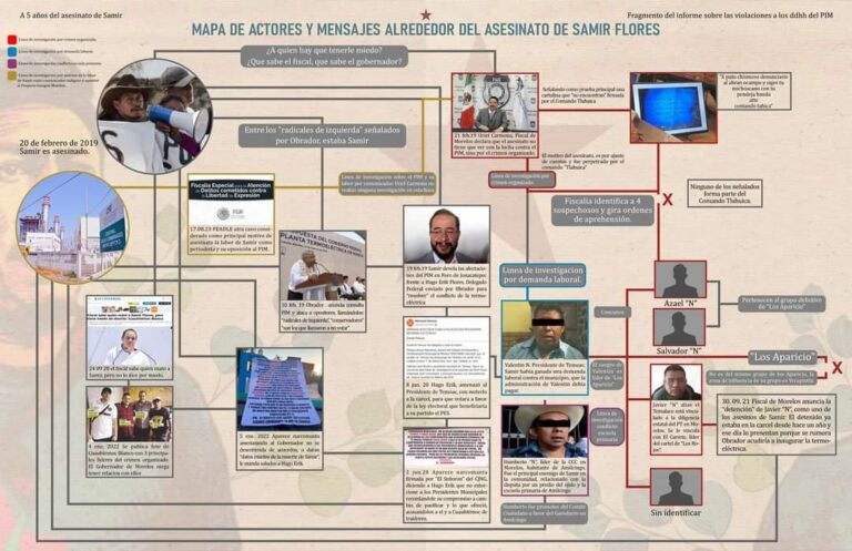 Hay un hilo muy grande, claro y lleno de aristas en torno al Proyecto Integral Morelos y el asesinato de Samir, ustedes pinten a discreción el mapa como les parezca y unan las líneas de los colores que consideren y dígannos: ¿Quién mandó matar a Samir? ¿Por qué no avanzan las investigaciones?