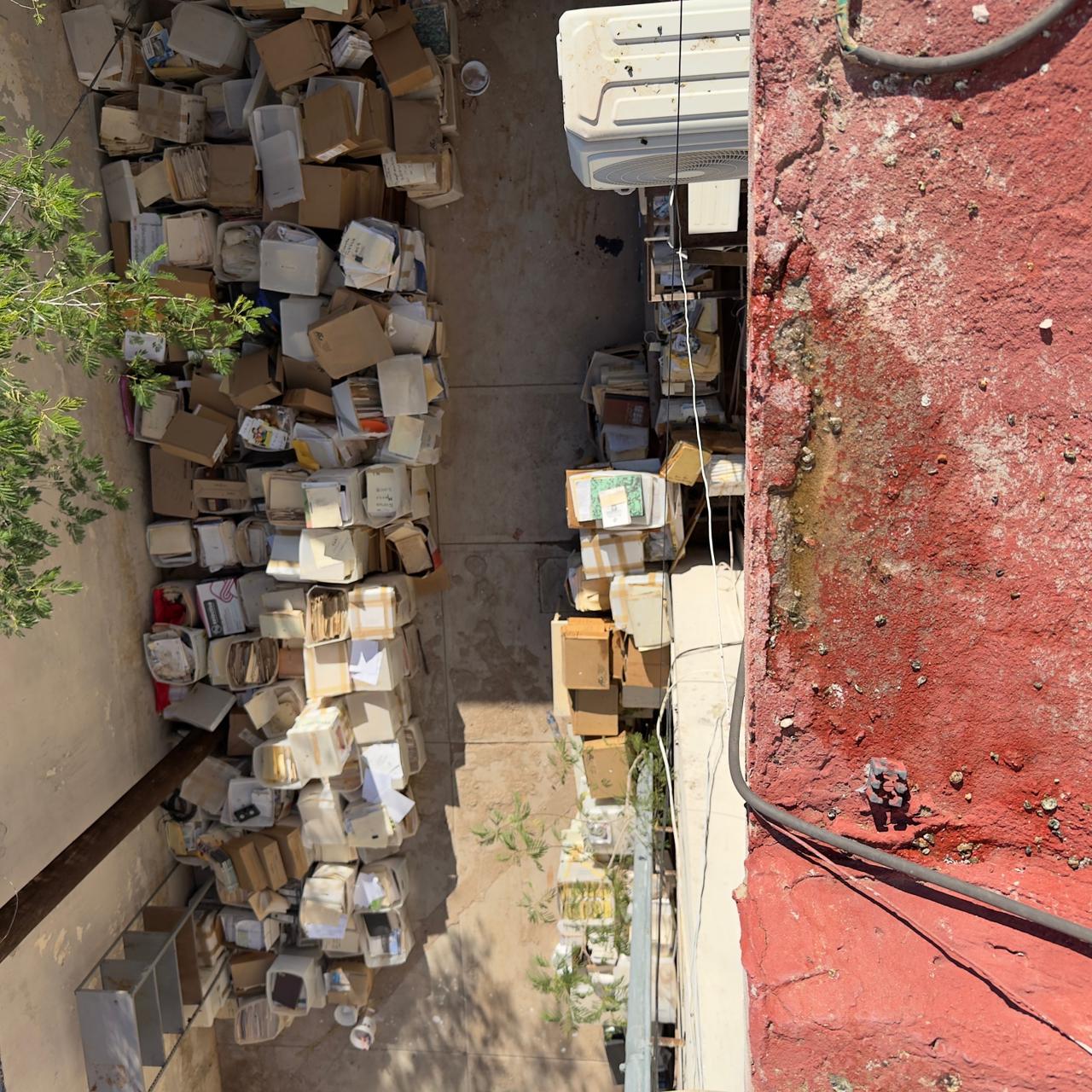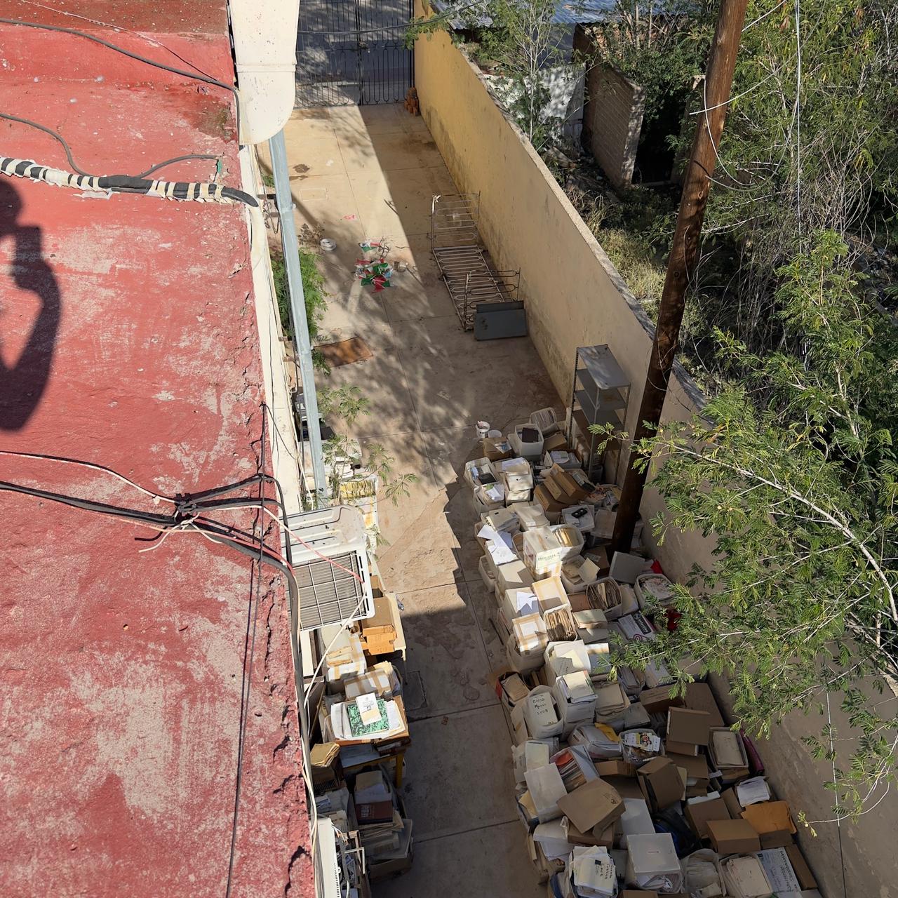 De acuerdo con la denuncia de la cronista municipal, Dra. Delia Piña, el personal del Ayuntamiento movió decenas de cajas con documentos antiguos al patio de las instalaciones, donde quedaron expuestos a la humedad, el calor y el polvo. El traslado se realizó sin registro de inventario, sin condiciones de embalaje y sin supervisión técnica.