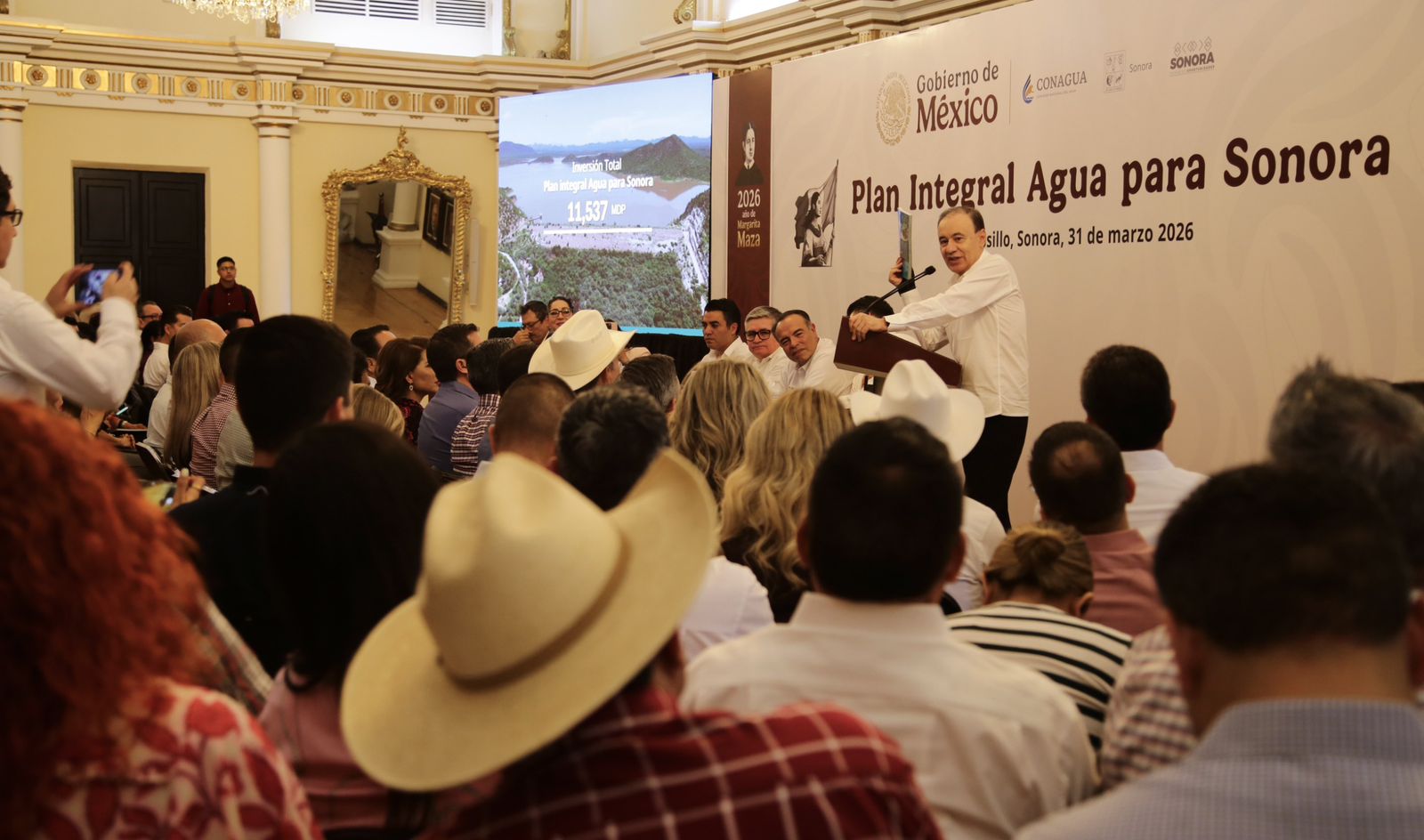 El Gobierno de Sonora y la Comisión Nacional del Agua (Conagua) firmaron un convenio de colaboración para poner en marcha el Plan Integral de Agua para Sonora (PIAS), el cual contempla una inversión total de 11 mil 537 millones de pesos con el objetivo de fortalecer el abasto del recurso hídrico y modernizar la infraestructura en la entidad.