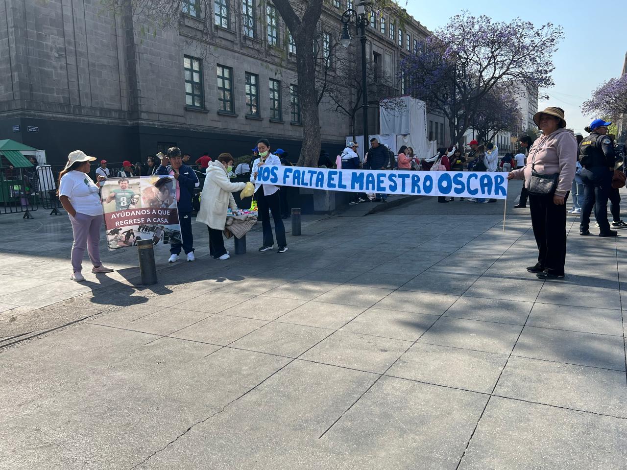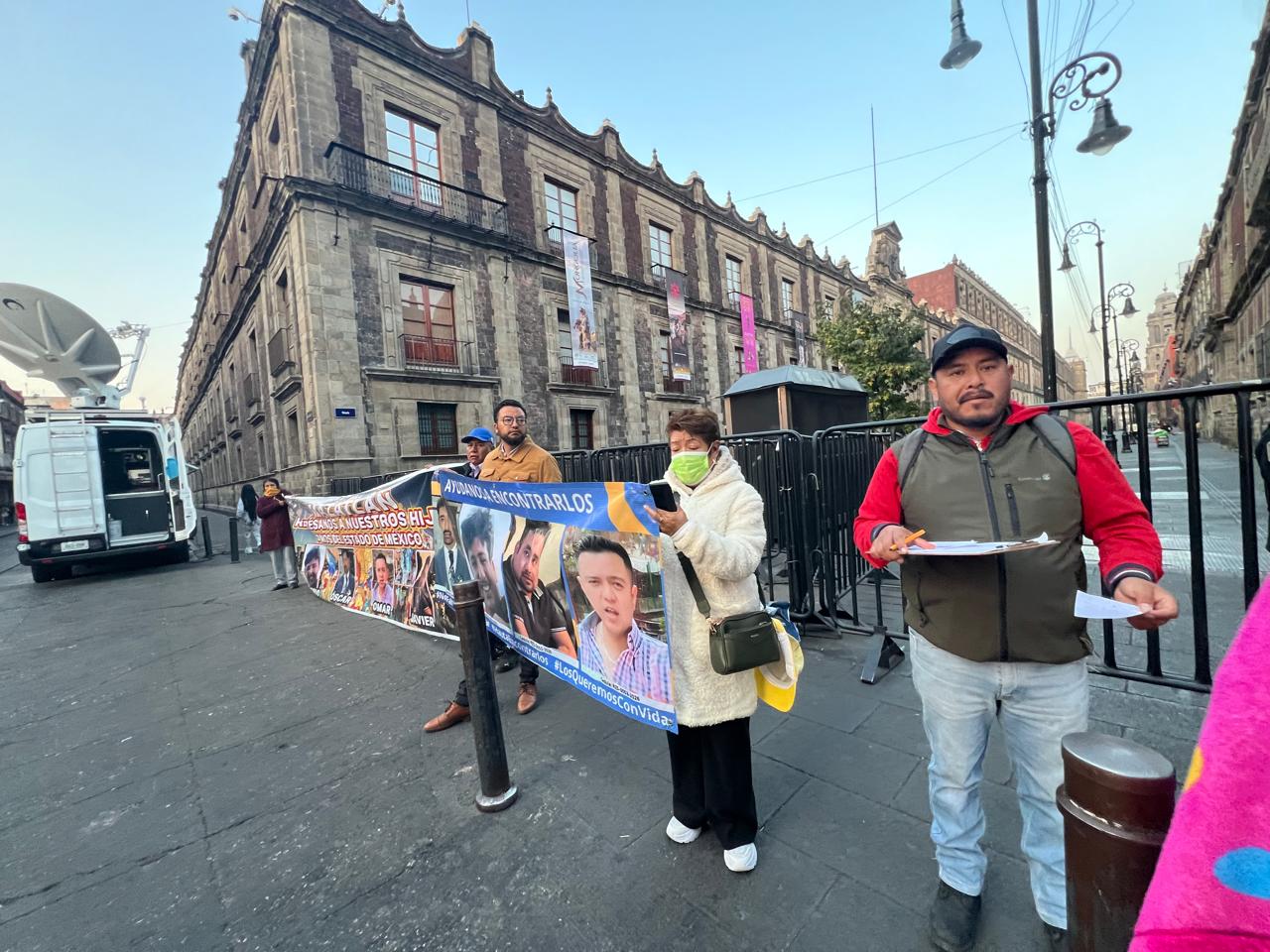 Llegaron de madrugada, esta vez son cerca de cien, colocaron las mantas con los rostros de los jóvenes en Correo Mayor y Moneda, para llamar la atención de reporteros que entran por ahí a Palacio Nacional. Es la tercera vez en una semana porque ante la impotencia de que ninguna autoridad les informa ni resuelve.