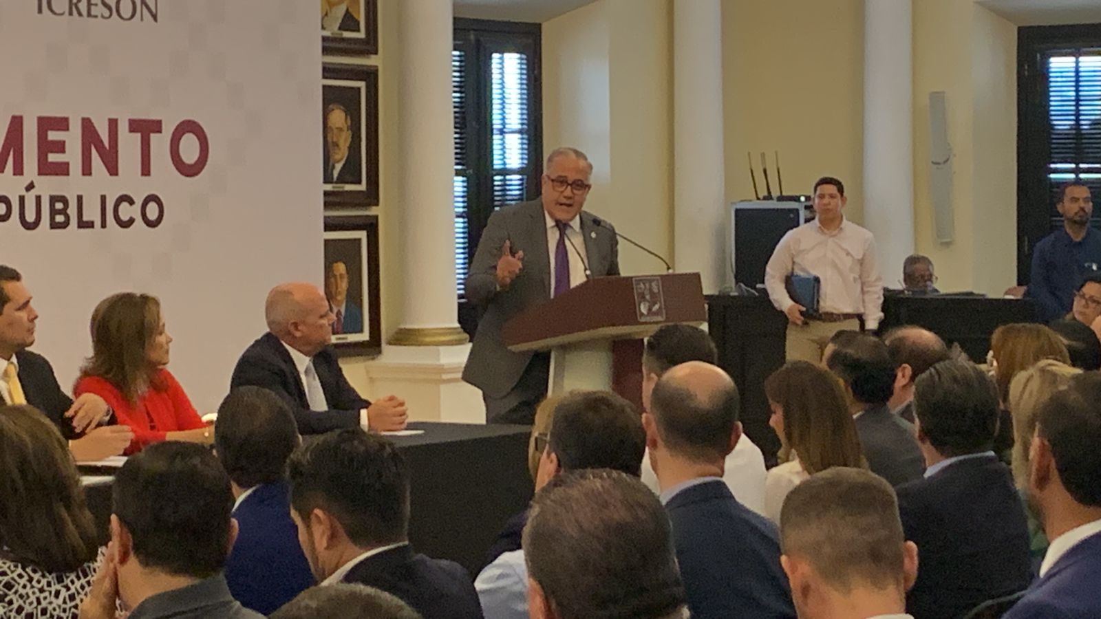 Acompañado de Adolfo Salazar Razo, secretario de Gobierno; Liza Adriana Auyón Domínguez, directora general de Notarías; María Soledad Velázquez Herrera, vocal ejecutivo del Instituto Catastral y Registral del Estado de Sonora (Icreson) y Ricardo Araiza Celaya, subsecretario de Servicios de Gobierno, el gobernador Durazo Montaño reconoció la valiosa labor del notariado sonorense en beneficio de la ciudadanía.