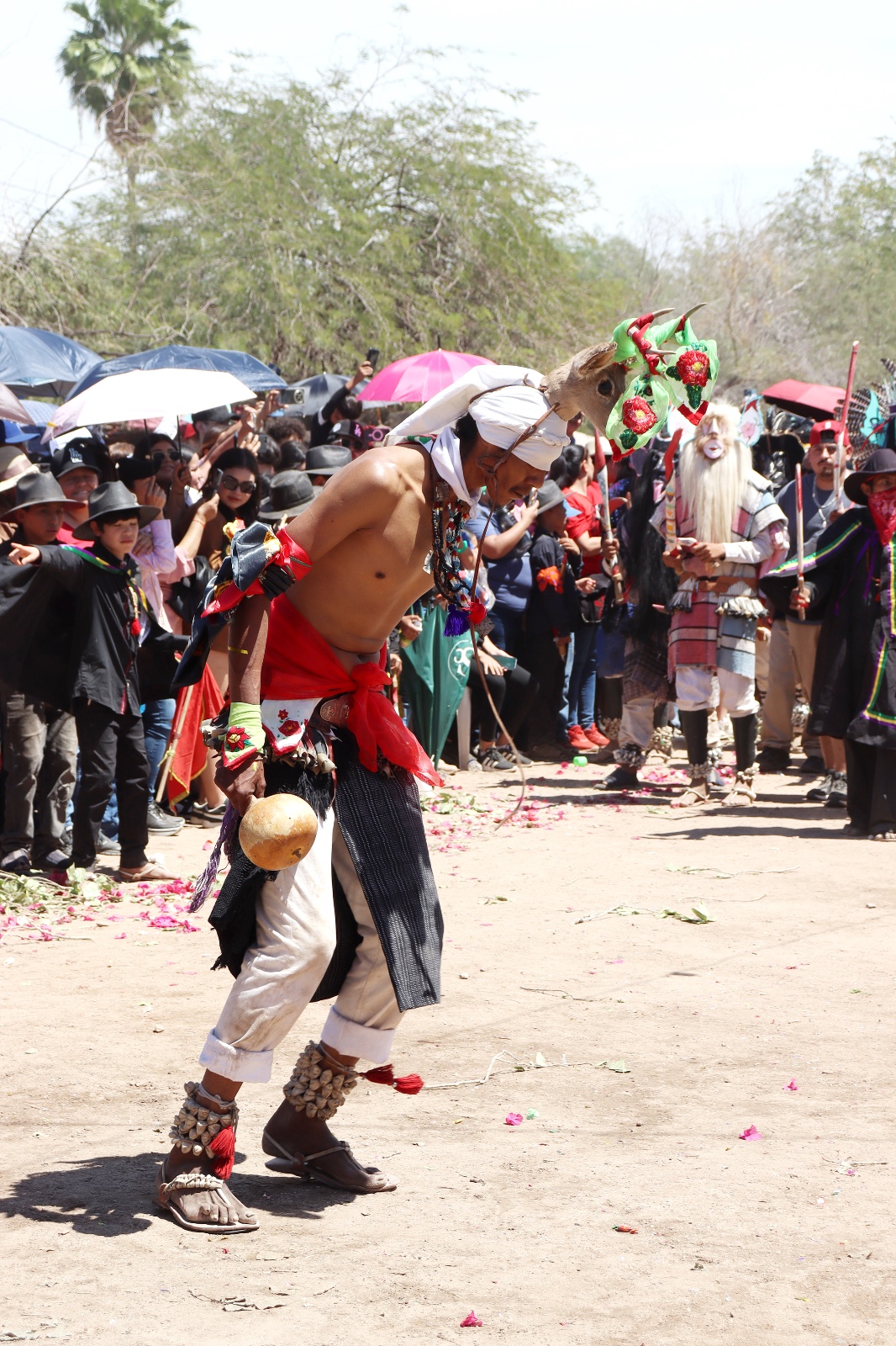 Desde temprana hora, el espacio fue acondicionado para llevar a cabo ceremonias como rezos, danzas tradicionales del venado y pascola, así como el canto de gloria. Durante la jornada, asistentes siguieron los recorridos previos al momento central, cuando los fariseos se retiraron las máscaras utilizadas en los rituales.