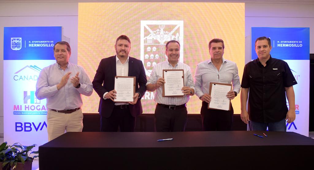 Trabajadoras y trabajadores del Ayuntamiento de Hermosillo tendrán por primera vez la oportunidad de adquirir, refinanciar o remodelar una vivienda luego de la firma de convenio del Presidente Municipal, Antonio Astiazarán, con representantes de la Cámara de la Industria de Desarrollo y Promoción de Vivienda (CANADEVI Sonora) y el banco BBVA Bancomer.