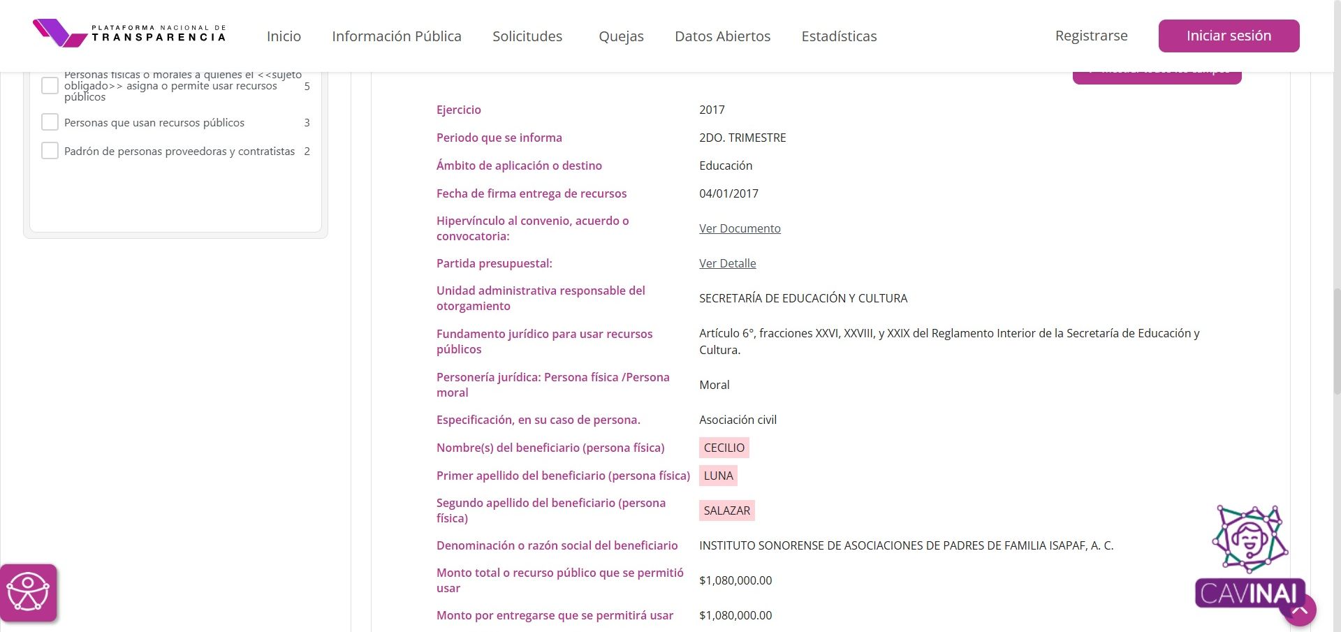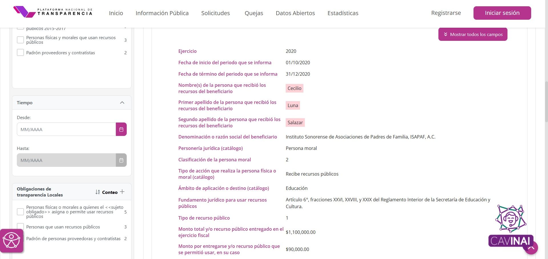 Todos los datos aquí expuestos son públicos, están en la PNT.