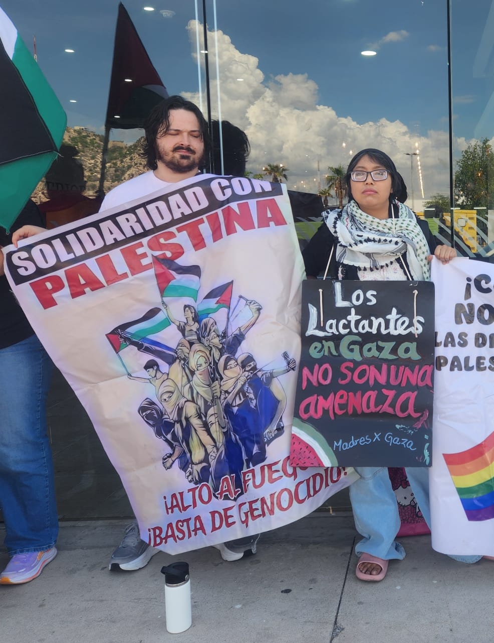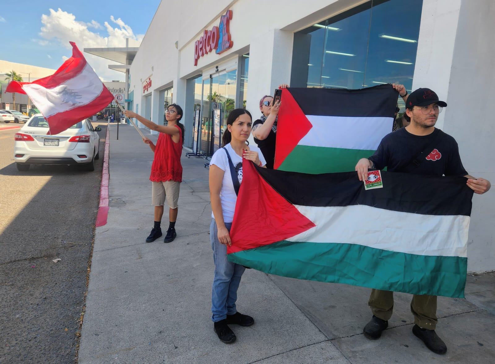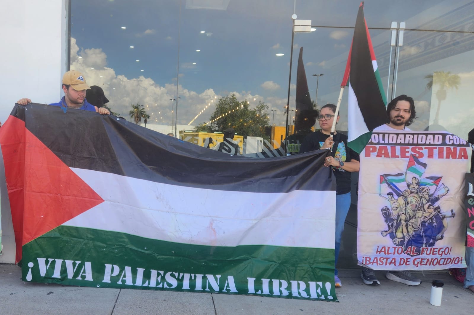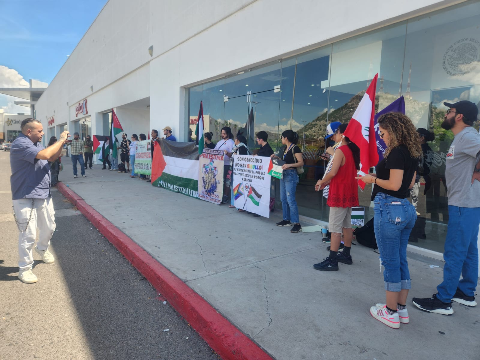 En respuesta al llamado global de l BDS (Boicot, Desinversión y Sanciones), el Comité Sonorense de Lucha por la LIberación de Palestina se manifestó este viernes 19 frente a la representación de la Secretaría de Relaciones Exteriores en Hermosillo, para exigir garantías de seguridad de la delegación mexicana en la Global Sumud Flotilla y que se rompan relaciones con Israel.