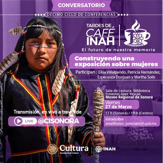 El evento se realiza en el marco del Mes de las Mujeres y forma parte de la tercera sesión del décimo ciclo de conferencias Tardes de CaféINAH. La cita es el próximo viernes 27 de marzo, a las 17:00 horas, en la biblioteca “Ernesto López Yescas” del Museo Regional de Sonora.