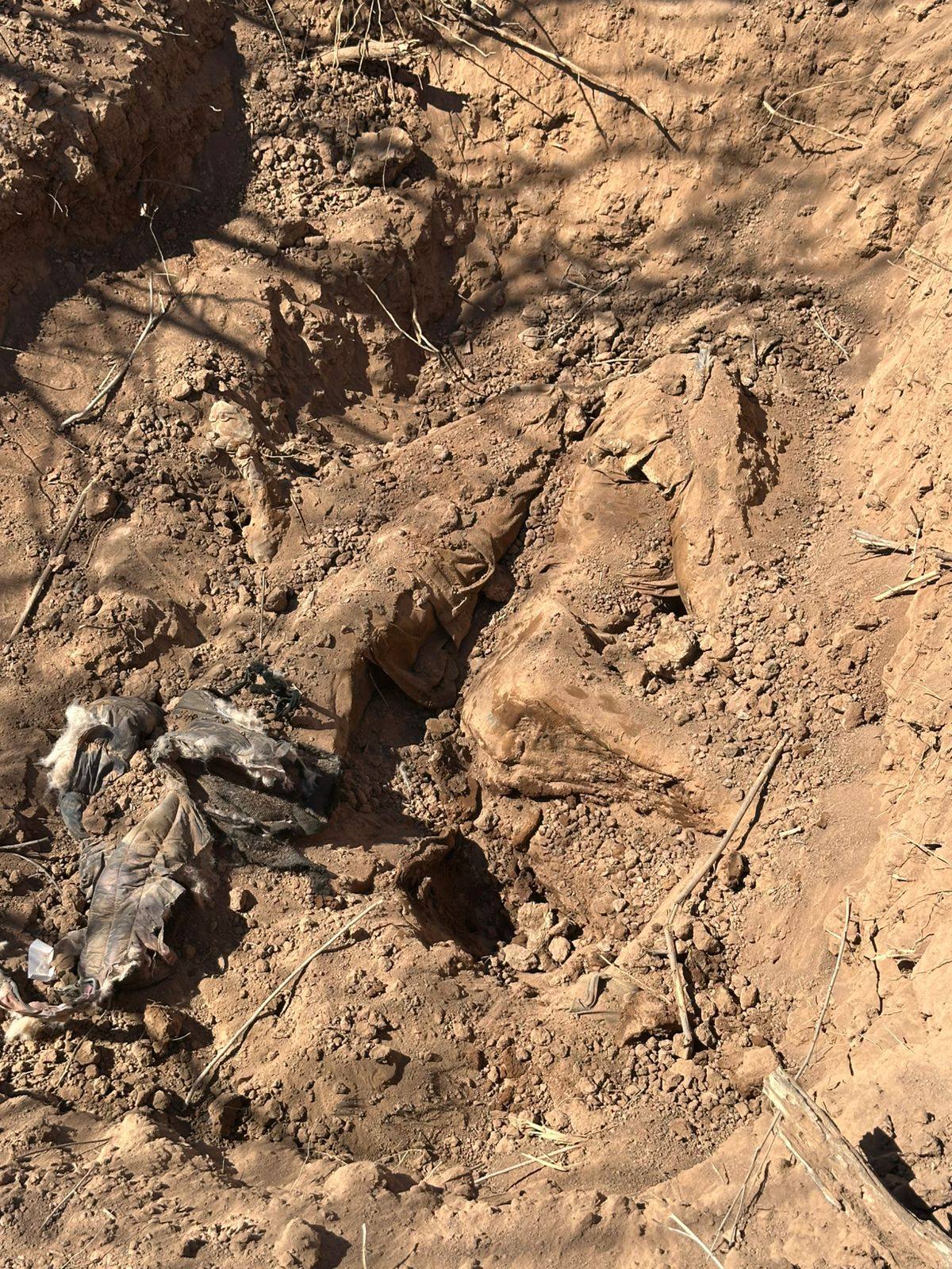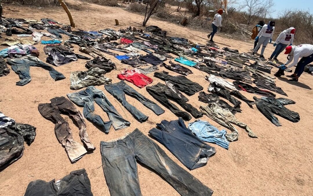 En adición a las 42 prendas encontradas, los casquillos percutidos, así como fragmentos de restos óseos localizados el primer día de búsqueda, el día de hoy se amplió la misma en terrenos aledaños a los hallazgos primarios, localizándose en esta inspección complementaria, dos cuerpos semi enterrados, los cuales fueron procesados y trasladados al Servicio Médico Forense (SEMEFO), para determinar mediante la necropsia de ley, temporalidad y causa eficiente de la muerte.