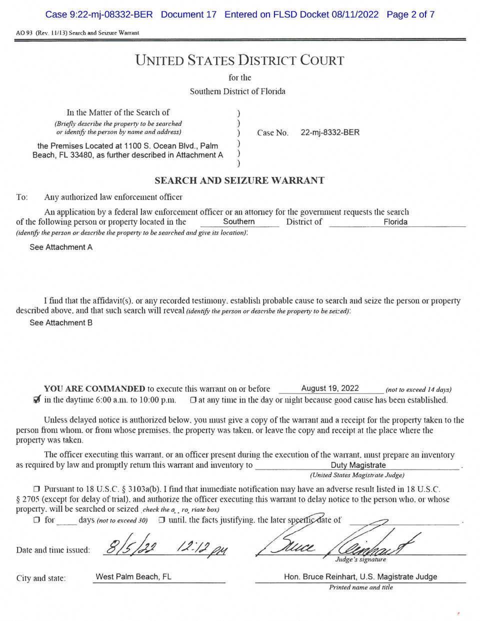 El fiscal general Merrick Garland anunció el jueves que el departamento le pidió a Reinhart que revelara la orden. Esto siguió a la afirmación de Trump de que la búsqueda fue una retribución política y una sugerencia de él, sin evidencia, de que el FBI pudo haber colocado evidencia en su contra.