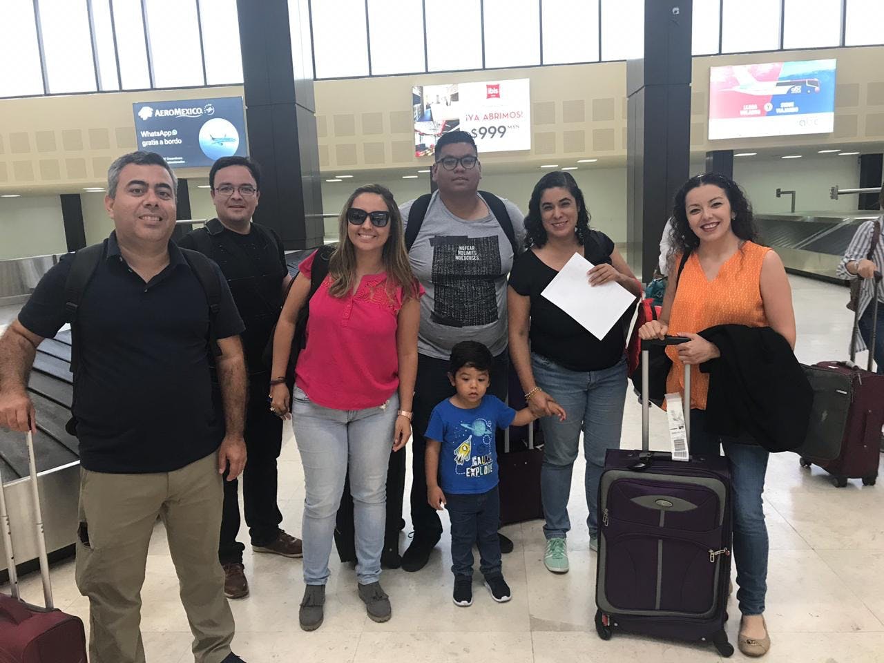 Al centro de la imagen, Alan Aviña, su esposa Karen y su hijo Emiliano, acompañados de Antonio García Viera (extrema izquierda), Ramsés Tamayo, Erika Llaguno y Gabriela Medina, todos miembros del Border Hub, camino al Investigatón de 2019 en Tijuana.