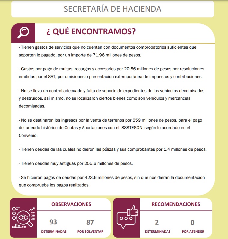 Al referirse a los Ayuntamientos, precisó que se realizaron 1,200 auditorías a 161 entes municipales, generándose 3,873 observaciones, de las cuales, se solventaron 1,391, quedando por solventar 2,482.