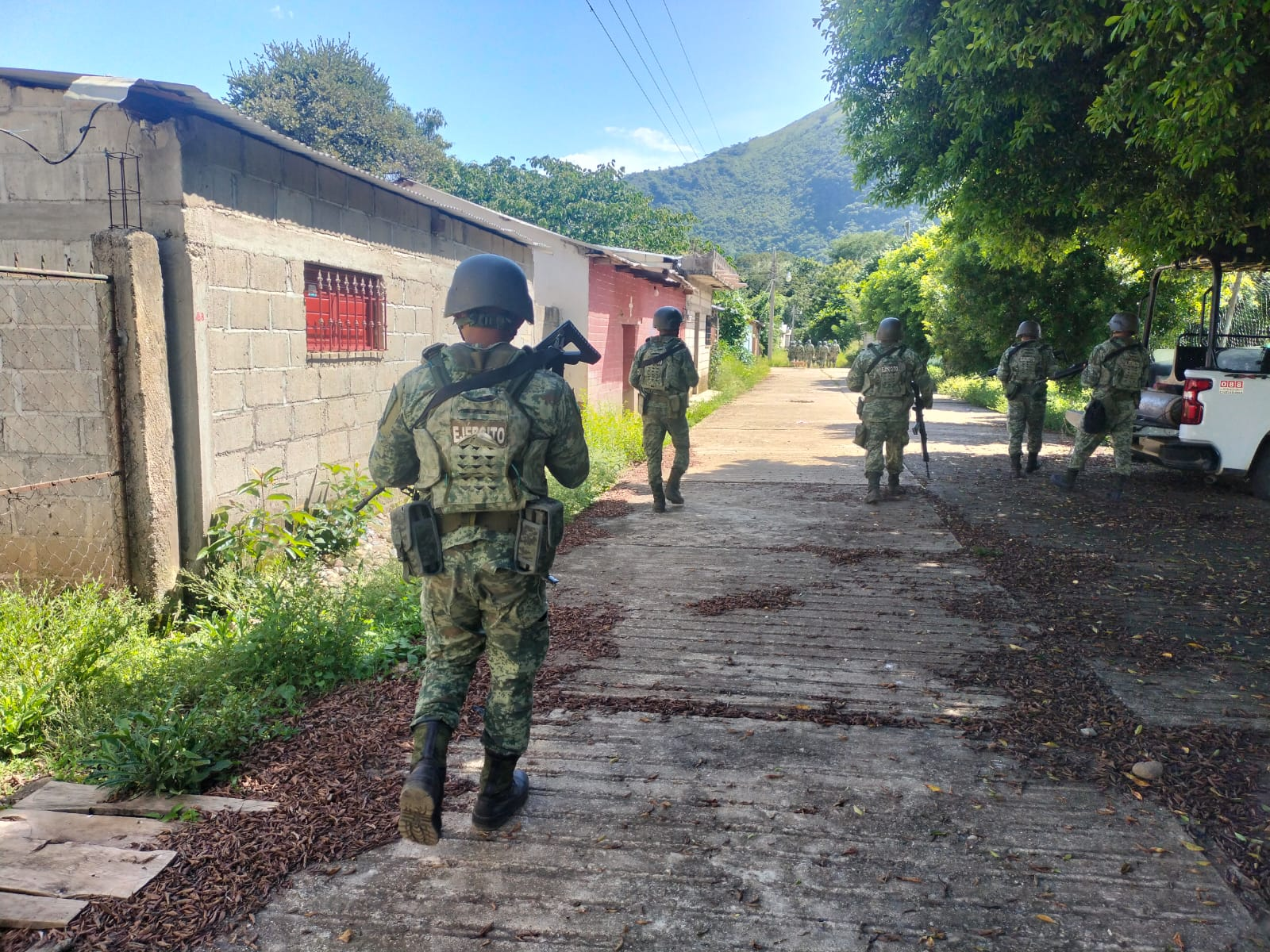 Este jueves 25, personal del 101/o. Batallón de Infantería del Cuartel de Chicomuselo, integrantes de la Fuerza de Tarea Regional de la VII Región Militar y elementos de la Guardia Nacional, ingresaron y permanecen en el lugar a fin de garantizar la seguridad en la población y lugares aledaños al Ejido de Nueva Morelia.