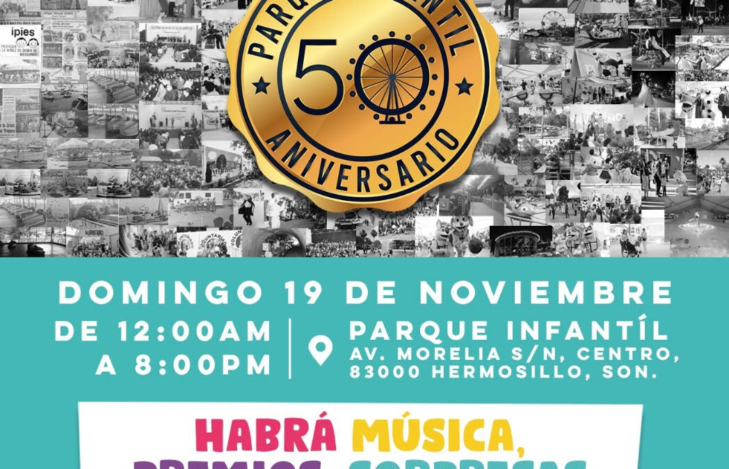 A 50 años de abrir sus puertas por primera vez, el Parque Infantil está de fiesta, por ello el Gobierno de Sonora a través del Sistema para el Desarrollo Integral de la Familia en la entidad (DIF Sonora) invita a celebrar en grande su 50 aniversario este domingo 19 de noviembre.