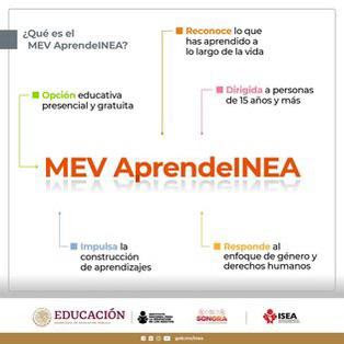 Para que un mayor número de personas mayores de 15 años estudien o concluyan su educación primaria y secundaria, el Instituto Sonorense de Educación para los Adultos (ISEA) ofrece el modelo MEV AprendeINEA, estrategia implementada a nivel nacional.