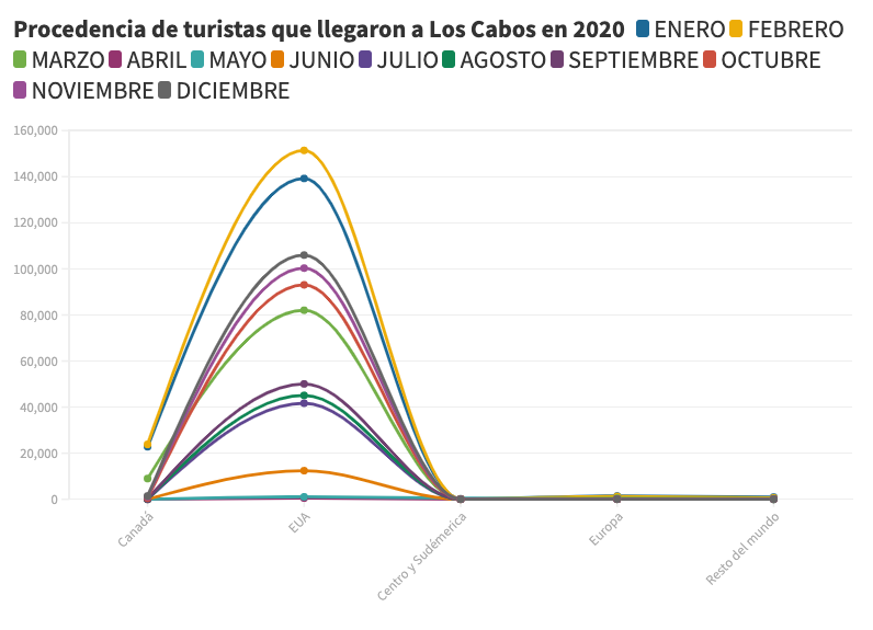 Con más de un millón 323 mil turistas provenientes de Estados Unidos, país que, según Los Ángeles Times, contabilizó “650 mil nuevos contagios de Ómicron la segunda semana de diciembre y alcanzaba el 73% de los casos” a finales del 2021, más de 200 mil llegaron vía aérea sólo en diciembre a Los Cabos.