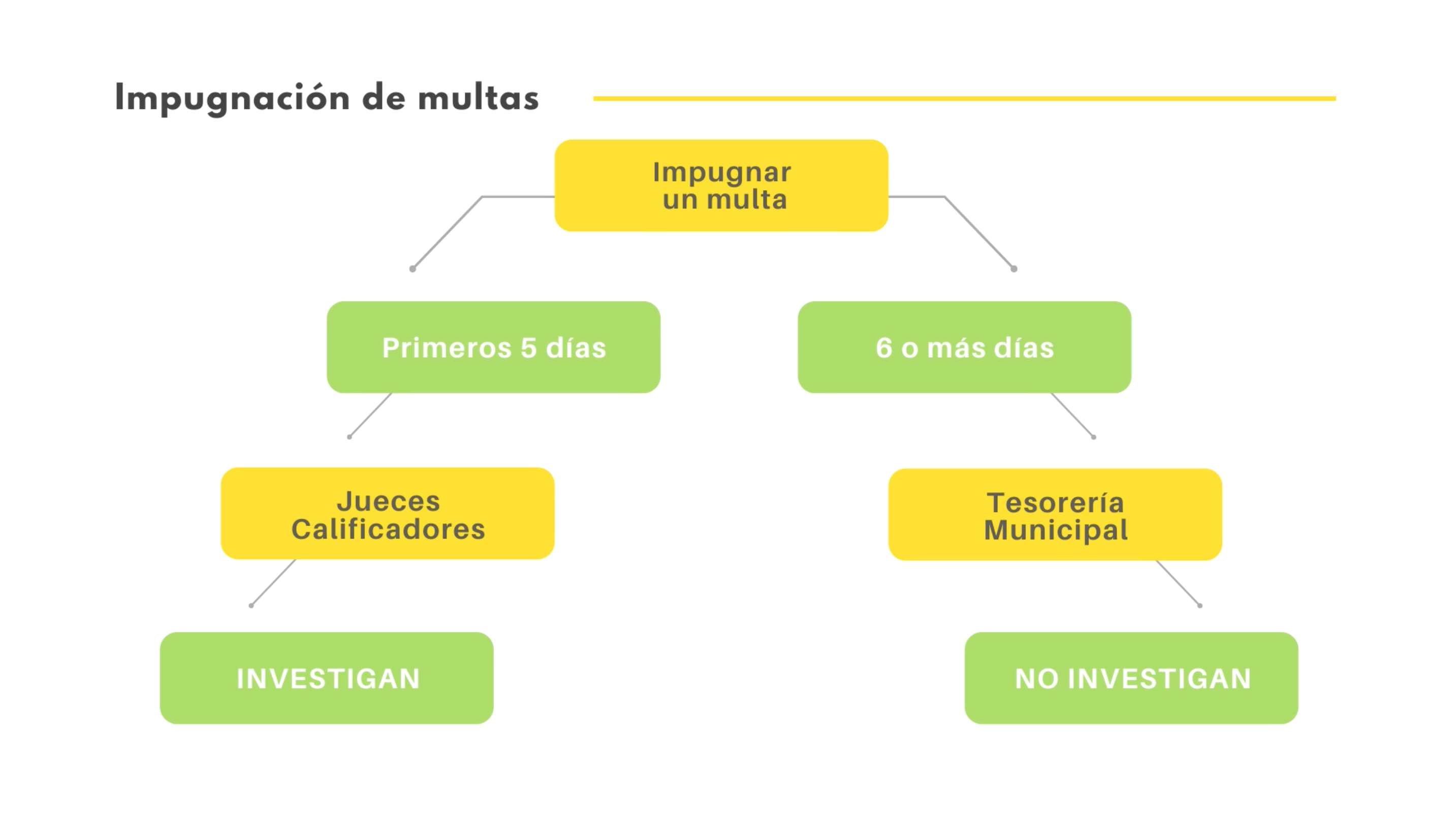 A partir del sexto día, los ciudadanos que no estén de acuerdo con su multa únicamente pueden acudir a un módulo de la Tesorería Municipal, donde el personal les ofrece alguna consideración o descuento, pero no están facultados para investigar si la infracción fue aplicada correctamente o debe ser cancelada.