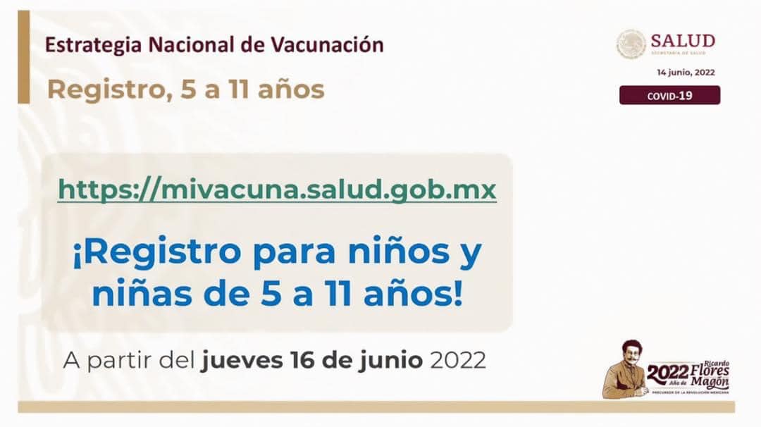 Por lo pronto se puede ir registrando a los menores a partir del jueves 16 de junio en mivacuna.salud.gob.mx.
