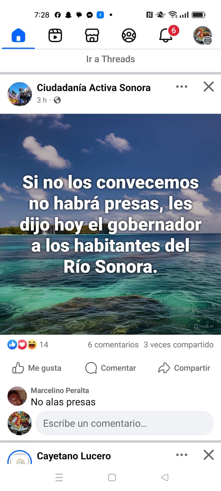 Lo más sano para evitar que se profundice la crisis política y escale a niveles de violencia institucional, es que Alfonso Durazo se apegue al dicho “es de sabios cambiar de opinión” y proceda a cancelar el proyecto de construir presas porque es un proyecto sin vida desde el momento en que no hay documento que se haya hecho público y a pesar de ello, se intentó forzar su aceptación sin contar con la participación de los habitantes de los pueblos del río. Se afirma que hay presupuesto aprobado, lo pertinente es que se convoque a reuniones públicas para que en asambleas populares, los habitantes de los pueblos del río Sonora y también de la capital del Estado, decidan como distribuir los recursos financieros que se destinaron a este proyecto ($7,500 millones de pesos), para resolver el problema del agua en Sonora.