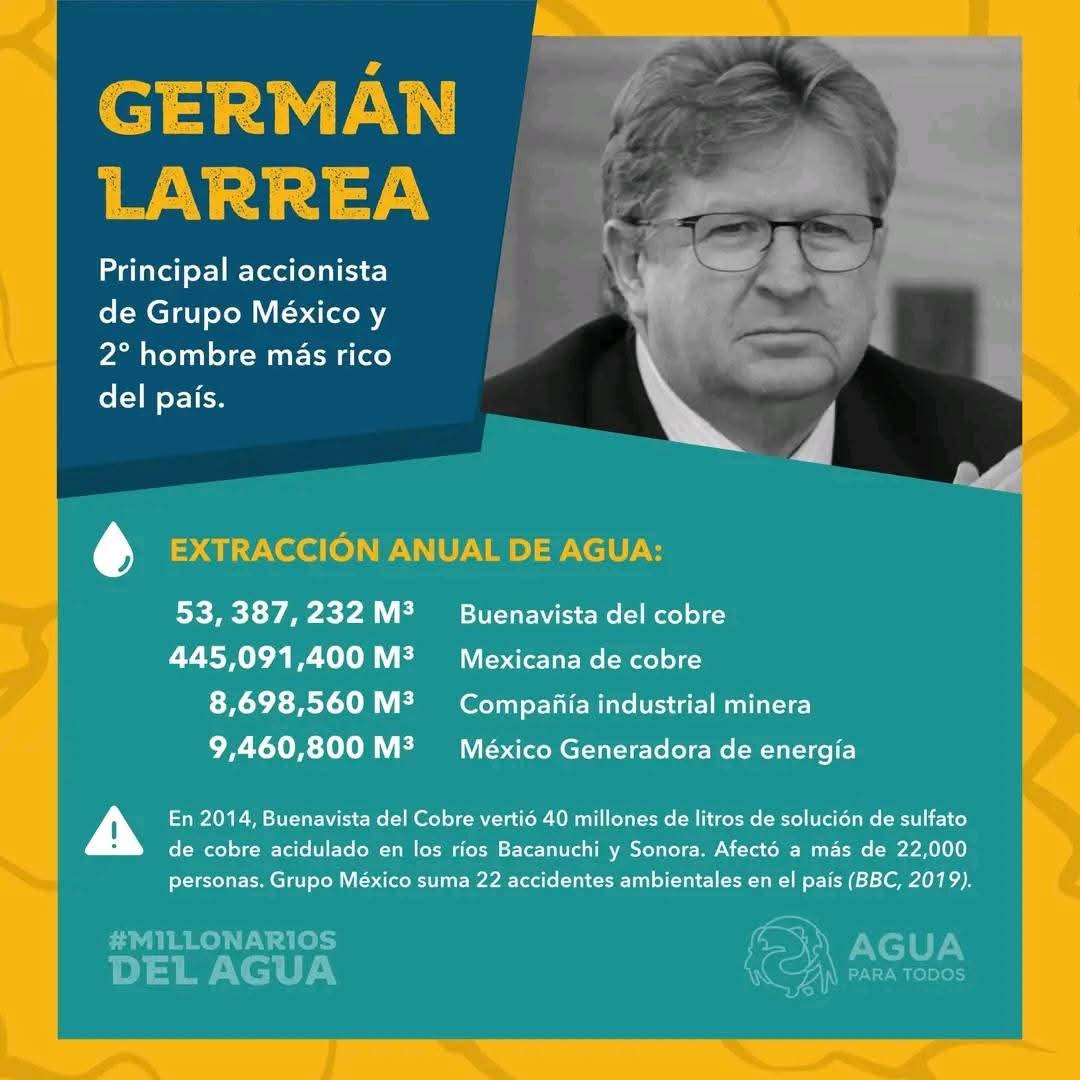 En esta lucha estamos realizando un aprendizaje que consiste en darnos cuenta de que en Sonora la mayor parte del agua es acaparada por la industria minera en la cual destaca Grupo México, pero también se encuentra la industria cervecera, refresquera, agrícola, ganadera y de la construcción, que también necesitan grandes volúmenes de agua para mantener su productividad.