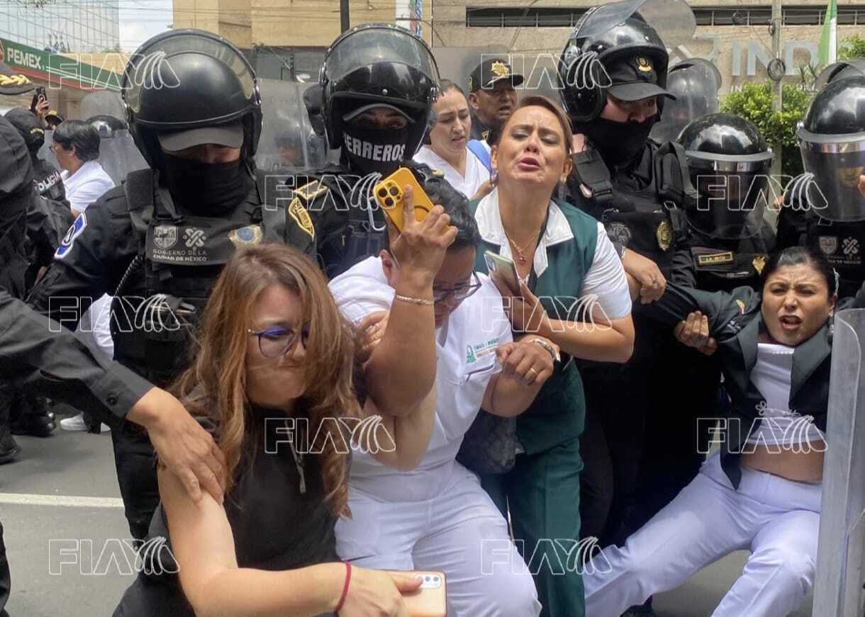 Debido a que García no se presentó a la reunión, las y los médicos, enfermeras decidieron hacer una manifestación pacífica, que sin embargo fue violentados por 150 granaderos