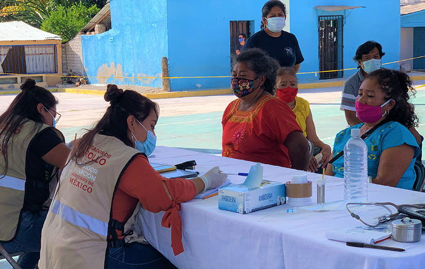 VALERIO TRUJANO, OAXACA.- ¡Doña Leonarda!, llama la enfermera muy entusiasta y sin dejar de preparar la jeringa con la dosis de vacuna de AstraZeneca.