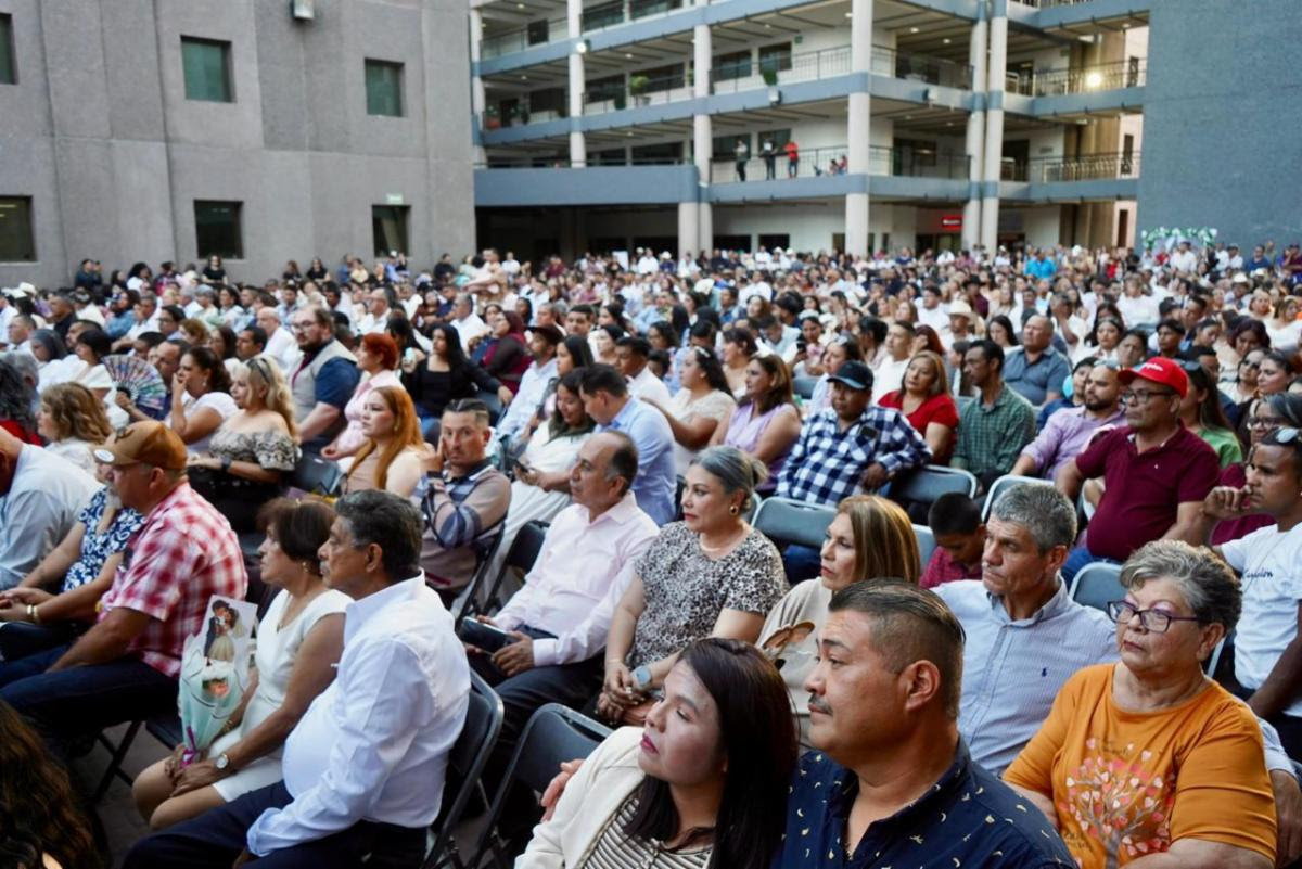 En Hermosillo, 474 parejas participaron en la ceremonia principal, donde formalizaron su unión en un evento realizado en la explanada del Centro de Gobierno. La actividad reunió a autoridades e invitados que acompañaron a las y los contrayentes durante el acto.
