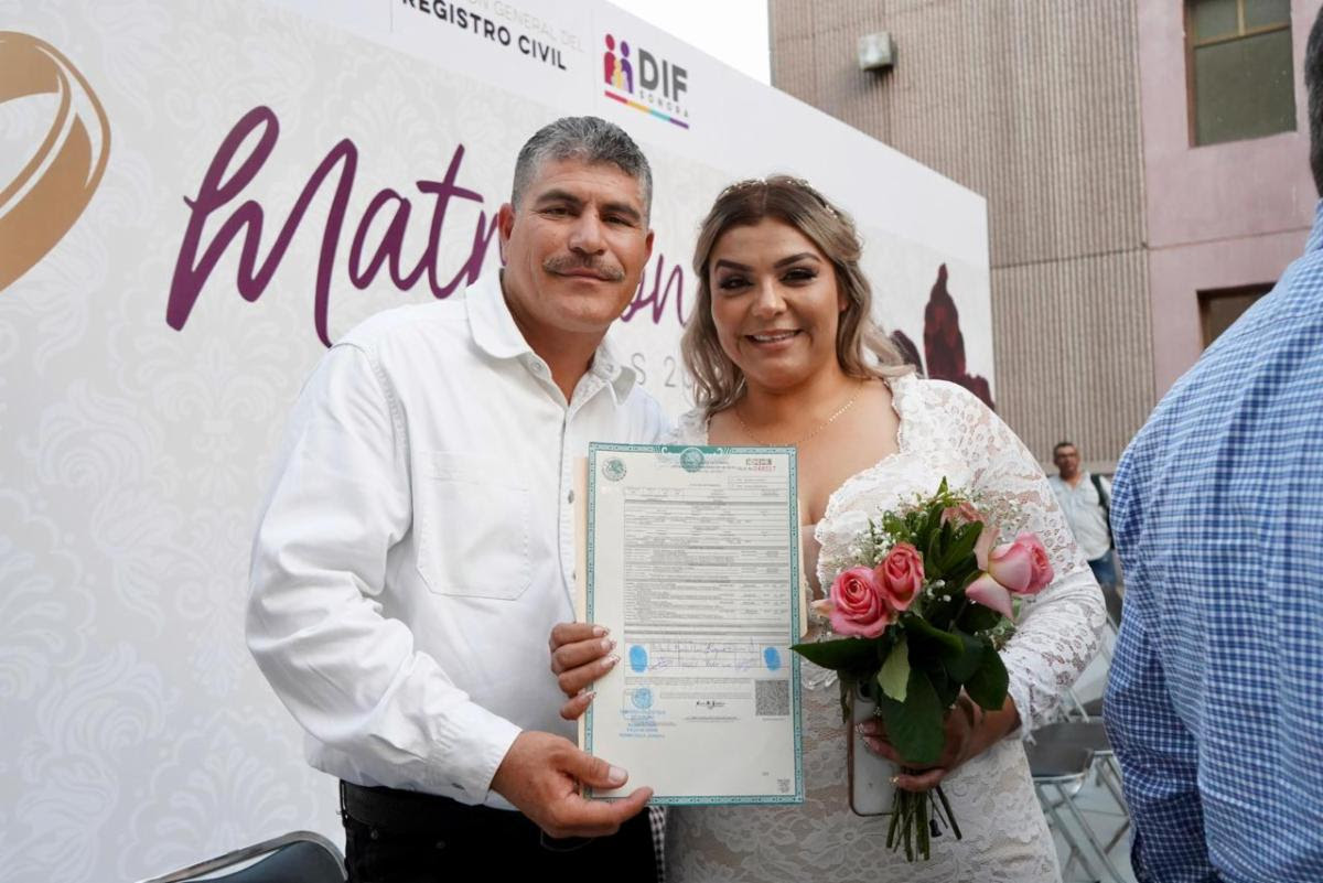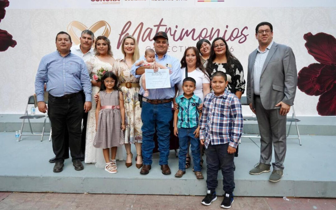Como parte de una jornada estatal de matrimonios colectivos, un total de dos mil 124 parejas contrajeron matrimonio en Sonora, en una iniciativa coordinada por el Sistema DIF estatal y el Registro Civil, orientada a facilitar el acceso a este trámite y brindar certeza jurídica a las familias.