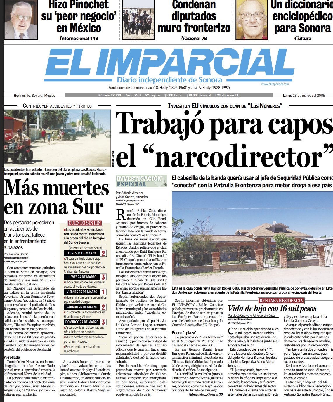 Alfredo Jiménez Mota, reportero especializado en temas de seguridad para el diario El Imparcial, fue visto por última vez el 2 de abril de 2005 en Sonora. Desde entonces, no se ha esclarecido su paradero ni se han reportado personas detenidas por su desaparición.