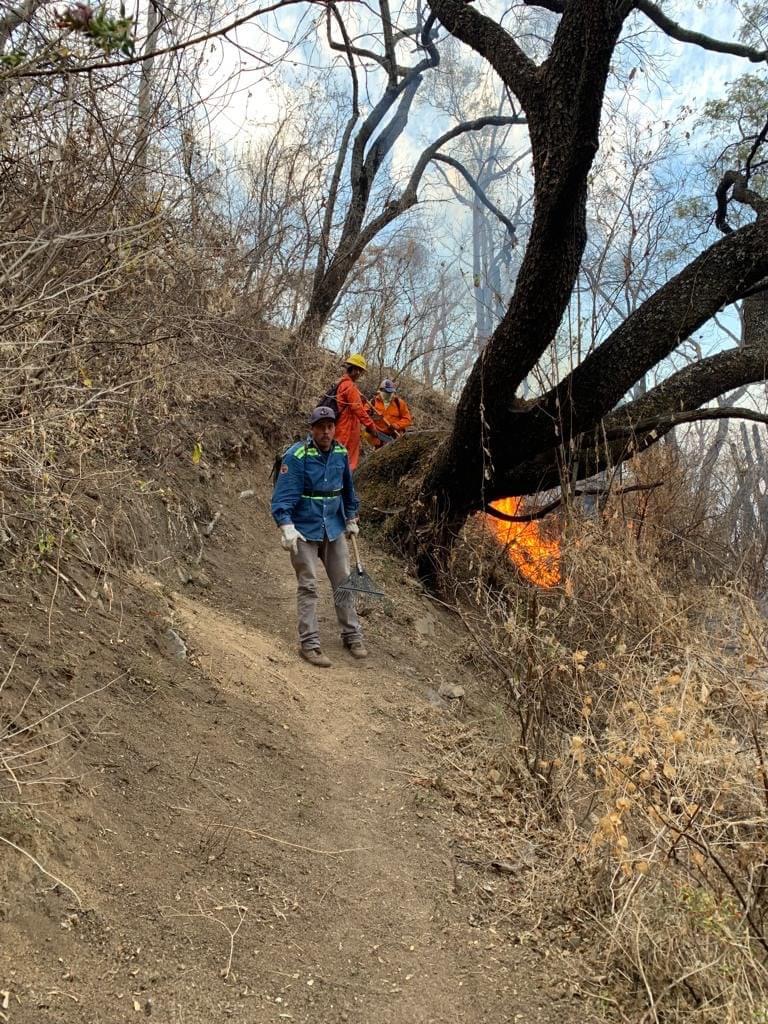 Se espera además el apoyo de “60 brigadistas más, y que no se han podido unir a las labores de combate por lo accidentado del terreno de más de 70 grados de inclinación.”