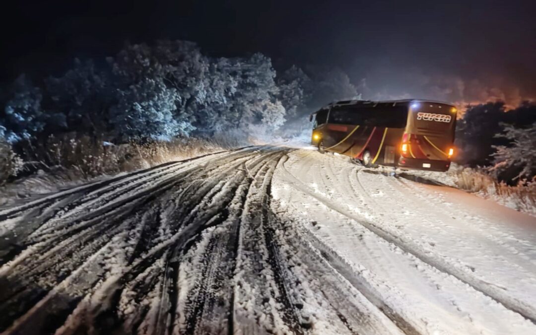 “Protección Civil Cananea atiende a dos autobuses que quedaron varados en la carretera Ímuris – Cananea; reporta que los pasajeros están fuera de peligro pues cuentan con calefacción”, informó Protección Civil.